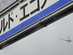 ![]() 上空は取材のヘリコプターがブンブンブン。 |