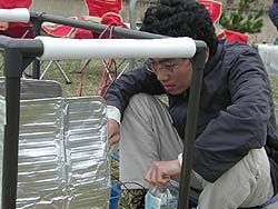 ![]() 役員の方々がくす玉割の準備。 『合図と共にひもを引いてください』 |
