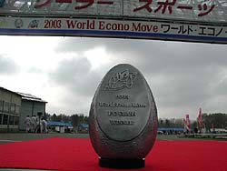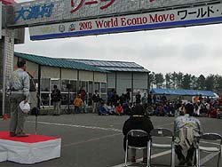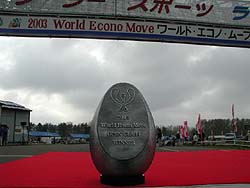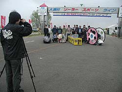![]() コントロールアーチをバックに育英高専の全マシンが記念撮影会。 |