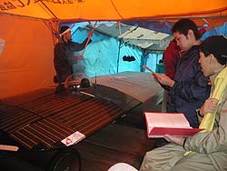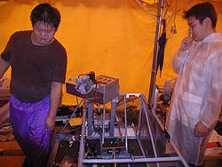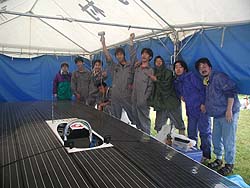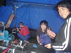 ![]() 信州大学さんはH-2クラスとFCクラスに。 どちらのマシンもただいま組み立て中。 人数、時間ともぎりぎりなのに余裕のスマイル。 |