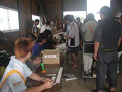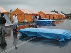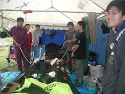![]() ほとんどのマシンはブルーシートに保護されて見えません。早くみたい〜。 |