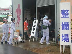 ![]() 雨なので今日の車検はピット出前車検。ウエイトチェックはここでします。 |