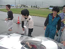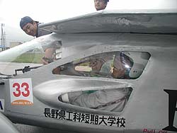 ![]() 秋田県立大学短期大学部のアルカディアS。モーターとモータードライバを新しくしたけど、その結果がわからないから心配・・といいつつもにこにこの表情の小林先生。 |