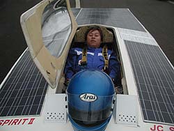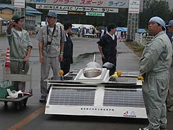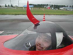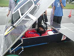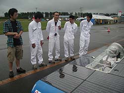 ![]() No.32東海大学 Trysolのドライバーさん。(何か言いたいことある?)「えっ!遺書ってことですか?」いえいえ、レースに向けてのメッセージということです |
