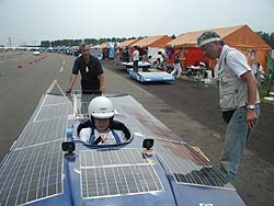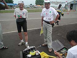 ![]() ゴール時間内にフィニッシュ。 No.64の足利工大付属高校さん。 そばで暖かく見守る山本氏。 |