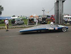 ![]() No.93津山高専さん。 タイムトライアルではチェーンが切れて参考出走。 (今日は元気に走っているようだけど、何かいいたいことある?)「もう、たのむよホンマ!」 ほんと。お日様お願い、出てきて・・。 |