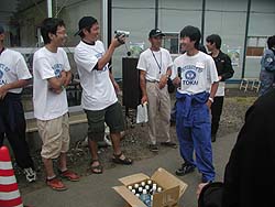 ![]() 飲料を勝ち取りその喜びの声を場内にスピーチ中。このスピーチをしないと景品は小林さんに没収されちゃうんです。 |