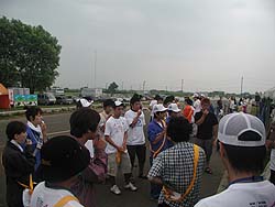 ![]() 本日のボランティアさん集合。 笛での合図の仕方など説明を受けています。 |