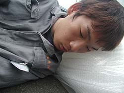 ![]() OSUさん。空を見て苦笑い。だけど、なんか余裕の様子。 |