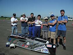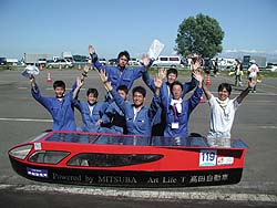 ![]() 3位の長野工業高校さん (勝因は?) 先生:「いい生徒にめぐまれたおかげです」 生徒:「いえ、先生の教えの結果です」 |