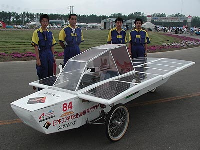 総合テクノロジー科はロボット、福祉、環境に関する総合的な知識と技術の修得を目指す学科であり、環境にやさしいソーラーエネルギーの基礎と応用技術をソーラーカーの製作を通して探求しています。